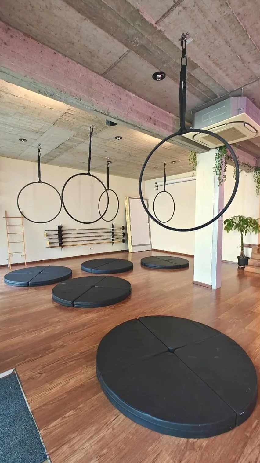 We launched our Aerial Hoop classes in the spring of 2026 for our pole students, with the intention to offer classes for complete beginners in aerial disciplines in the summer of 2026. Sign up here to be notified of our next tryout sessions.